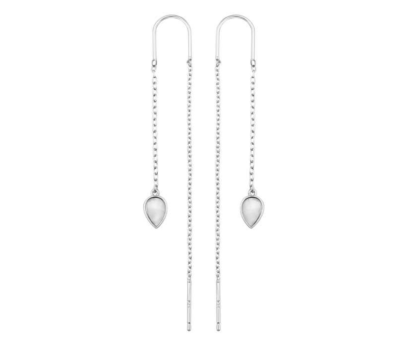 Strieborné retiazkové náušnice Azaria o dĺžke 10 cm s príveskom kvapky s perleťou